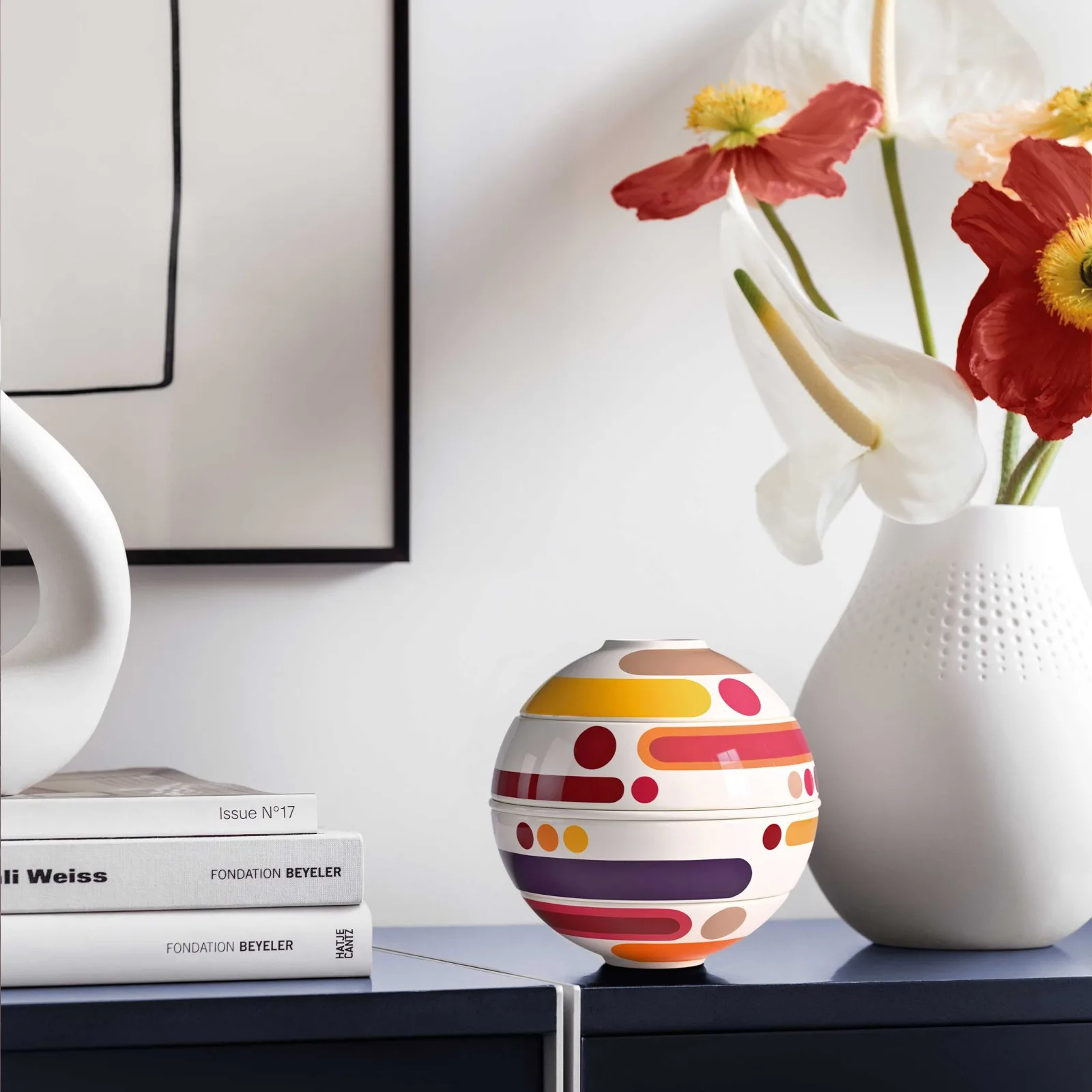 Bring a splash of colour and modern charm to your home with the La Boule Miami set from Villeroy & Boch. Crafted from premium multicoloured porcelain, this collection fuses retro-inspired geometric shapes with contemporary accents, creating a playful mid-century aesthetic that works beautifully as both tableware and decorative accessory.